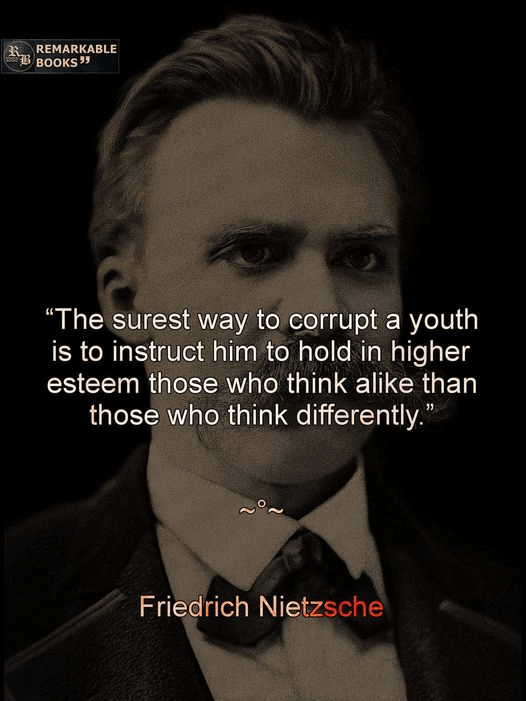 “ഇന്നുവരെ, ഏതെങ്കിലുമൊരു മതം, പ്രത്യക്ഷമായോ പരോക്ഷമായോ, സിദ്ധാന്തമായോ ദൃഷ്ടാന്തമായോ, ഒരു സത്യം ഉൾക്കൊണ്ടിട്ടില്ല.” – Friedrich Nietzsche in “Menschliches, Allzumenschliches” (“Das Religiöse Leben”).