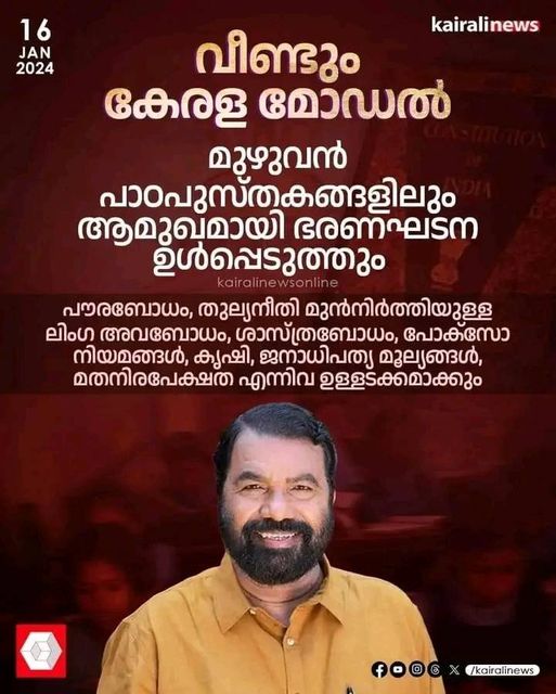 ഏതോ ഒരു പെമ്പിള നവകേരളസദസ്സിന്റെ ഭാഗമായി പിണറായിയ്ക്കു് ചാർത്തിക്കൊടുത്ത തലപ്പാവും, ബിഷപ്പന്മാരുടെ തലപ്പാവും തമ്മിൽ കാഴ്ചയിൽ “മോദിയും ഇഎംസും” പോലുള്ള “രാഷ്ട്രീയ സാമ്യം” ഉണ്ടല്ലോ താനും!