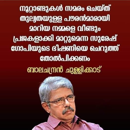 മറ്റേതൊരു നിയമരാഷ്ട്രത്തിലും ക്രിമിനലുകളായി പ്രഖ്യാപിച്ചു് കൽത്തുറുങ്കിൽ അടയ്ക്കപ്പെടുമായിരുന്നവരാണു്, കൂലിപ്പടകളെക്കൊണ്ടു് വർണ്ണശബളമായി അലങ്കരിച്ച വേദികളിൽ നിന്നു് യാതൊരു ഉളുപ്പുമില്ലാതെ കേരളത്തിലെ ജനങ്ങൾക്കു് സദാചാരത്തിനും ധാർമ്മികതയ്ക്കും സ്റ്റഡി ക്ലാസ്സുകൾ എടുക്കുന്നതു്!!!!