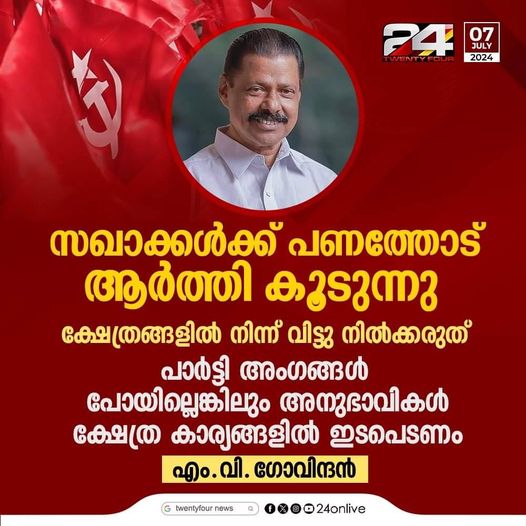 “നേതാക്കൾക്കിടയിൽ പണസമ്പാദനപ്രവണത വർദ്ധിക്കുന്നു.” – സഖാവു് എം. വി. ഗോവിന്ദൻ