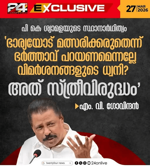 “വെള്ളാപ്പള്ളിയുടെ പ്രസ്താവനകൾ ഗുരുവിൻ്റെ ദർശനങ്ങളോടു് യോജിക്കുന്നതല്ല.” – ബഹു. എം. എ. ബേബി സഹാവു്.