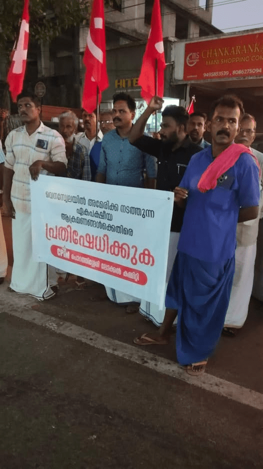 പി. സി. ജോർജ്ജ്, രാഹുൽ മാങ്കൂട്ടത്തിൽ, ഷാജൻ സ്കറിയ, കെ. എം. ഷാജഹാൻ മുതലായവരെ പിണറായിയുടെ പൊലീസ് എന്നപോലെ, വെനെസ്വേലൻ തൊഴിലാളിവർഗ്ഗ പ്രസിഡന്റ് ബഹു. നിക്കോൾ-ആസ് മഡൂറോ സഹാവിനെയും പട്ടമഹിഷിയെയും കിടക്കപ്പായിൽ നിന്നു് അറസ്റ്റ് ചെയ്തു് ബൂർഷ്വാ അമേരിക്കയിലെത്തിച്ച മൈ പ്രണ്ട് പ്രസിഡന്റ് ഡോണൾഡ് ട്രമ്പിന്റെ നീചവും നിന്ദ്യവും നികൃഷ്ടവും പ്രാകൃതവും ജുഗുപ്സാവഹവുമായ കിരാതനടപടിക്കെതിരെ സന്ധിയില്ലാസമരവുമായി രംഗത്തെത്തിയിരിക്കുന്ന പിണറായിപ്പാർട്ടിക്കും, പൊറത്തിശ്ശേരി ലോക്കൽ കമ്മിറ്റിക്കും സർവ്വതോമുഖമായ പിൻതുണ ഞാൻ, ശക്തി മത്തായി, ഇതിനാൽ രേഖപ്പെടുത്തിക്കൊള്ളുന്നു.