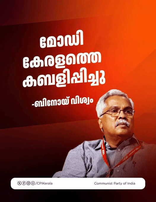 “ബിനോയ് വിശ്വം നാലാംകിട രാഷ്ട്രീയക്കാരനായി പെരുമാറുന്നു; സിപിഐ ഉത്തരം താങ്ങുന്ന പല്ലിയുടെ മാനസികാവസ്ഥയിൽ.”
